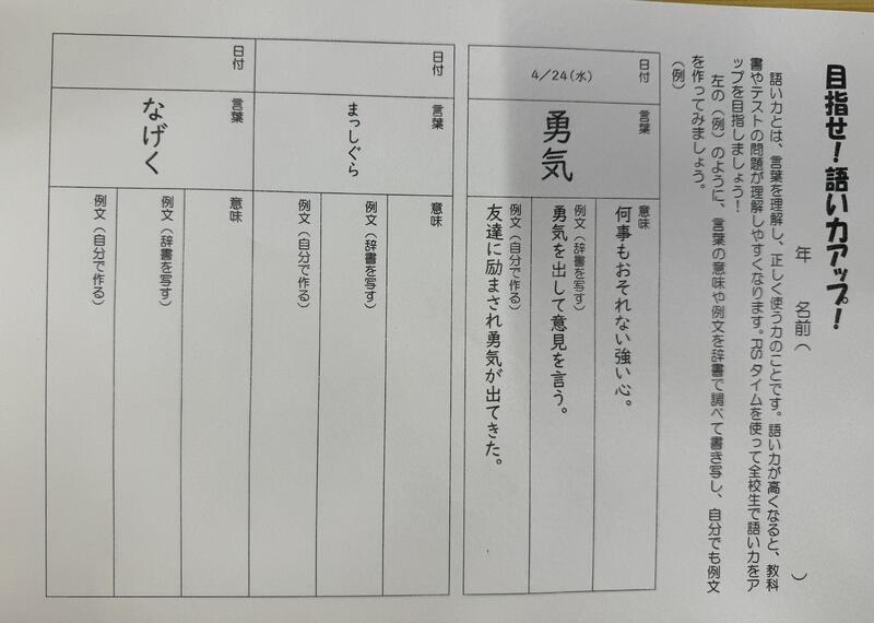 2024年5月13日 12時00分本校では、「みんなでチャレンジ、全力チャレンジ!」をスローガンに、全校児童で取り組んでいます。