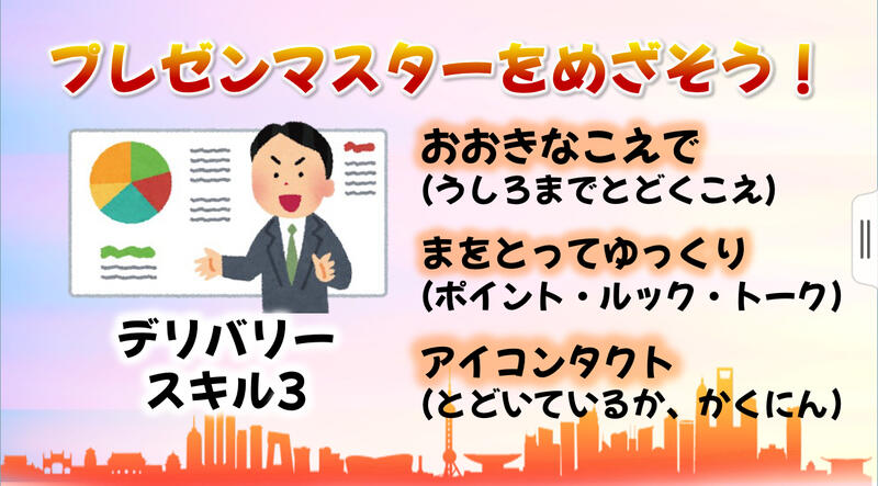 本校では、重点実践事項の1つにプレゼンテーションスキルの向上を掲げております。