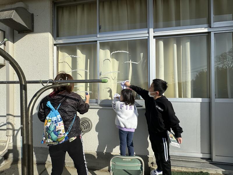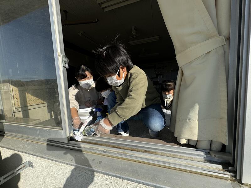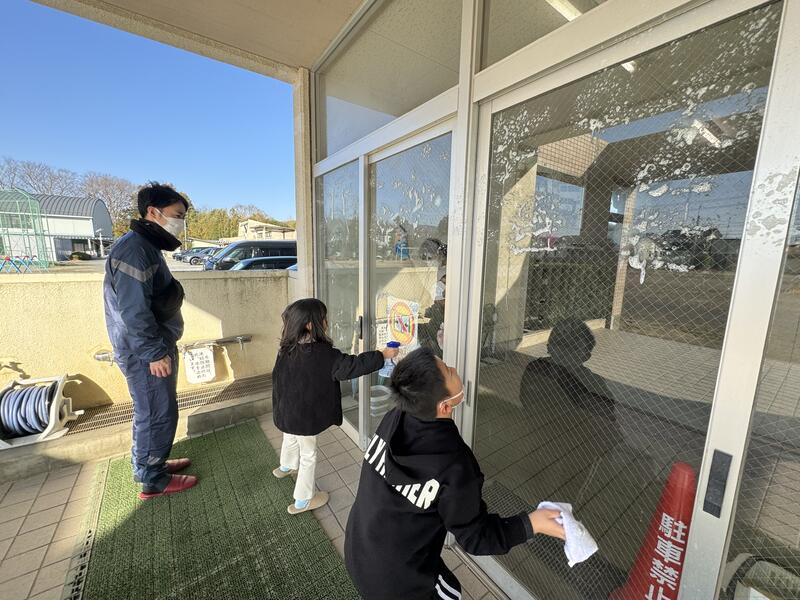 今年度最後の奉仕作業は、窓ガラス拭きです。