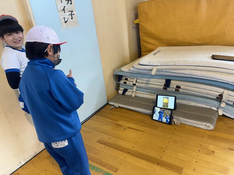 タブレットのカメラ機能のお陰で、リアルタイムに自分の動きを確認したしたり、後で見返したりしながら、表現活動に取り組んでいます。