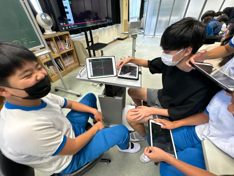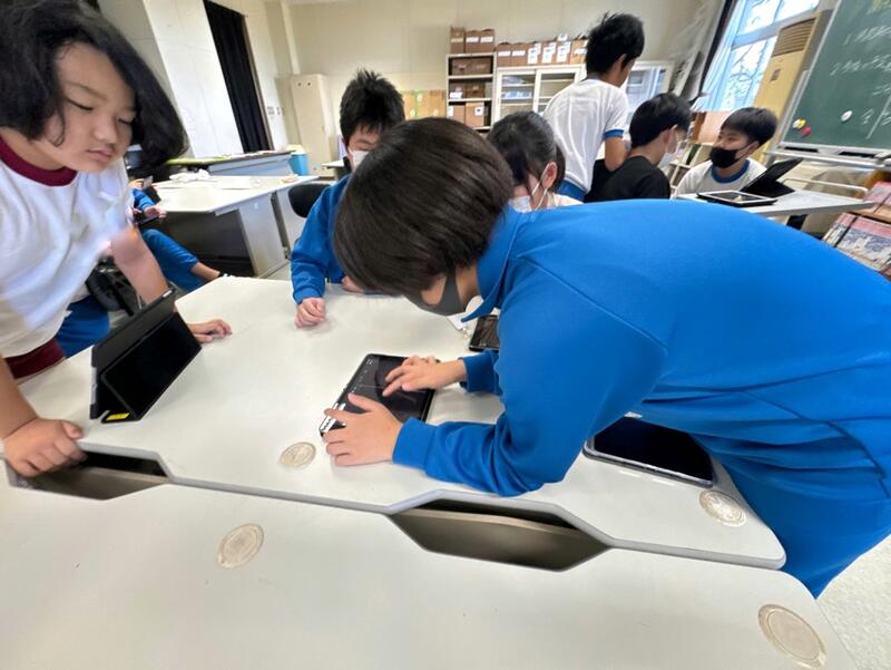 5、6年生は、11月に音楽教育家のMASAKingさんを講師に迎えて、ガレージバンドでオリジナル曲を作る予定ですが、その前にアプリに慣れておくということで、簡単なコードとメロディーを使った作曲体験に挑戦しました。