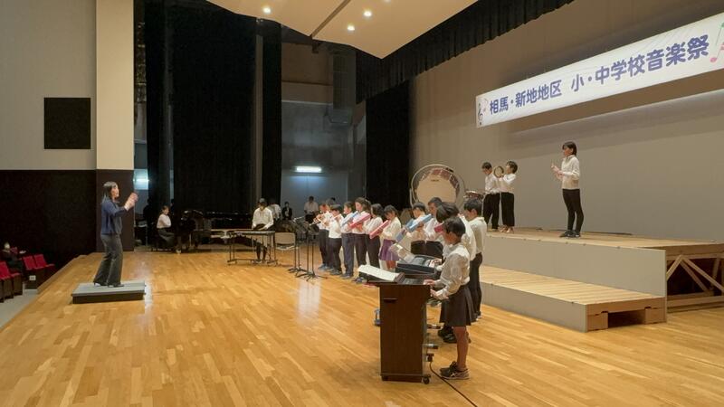 5年生が、相馬市民会館大ホールで行われた相新音楽祭の午後の部で「全力少年(スキマスイッチ)」の合奏を披露し、立派にやり遂げることができました。