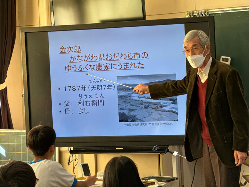 八幡神社の遠藤さんが外部講師で来校し、本校4年生に「御仕法」について分かりやすく教えてくださいました。