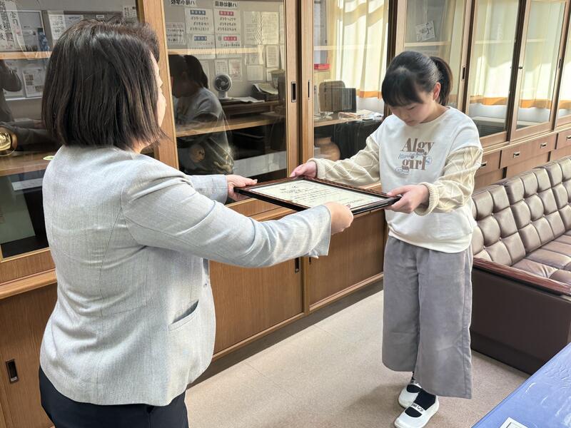 受賞した児童も学校も大変名誉なことだと喜んでおります。