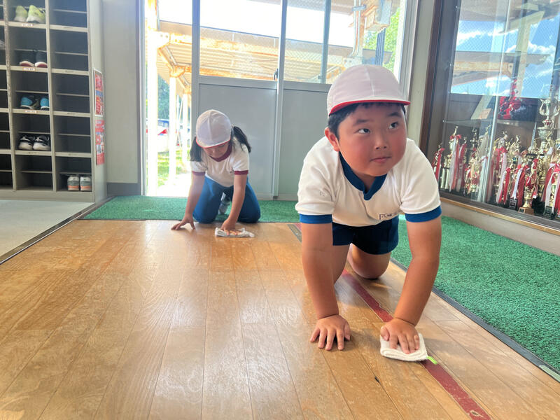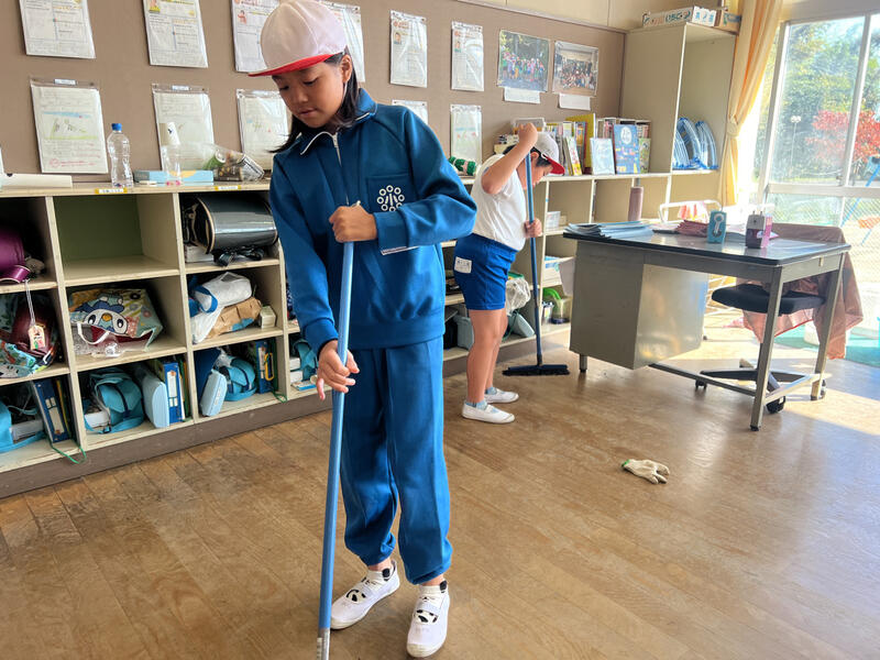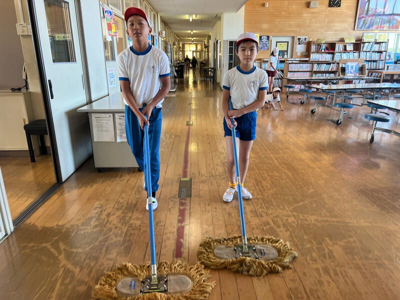 八幡小では、上級生から下級生まで一緒に協力して、一斉清掃に取り組んでいます。