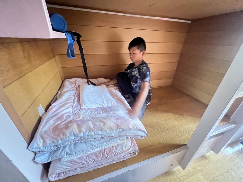 枕カバー、シーツの片付け、敷布団や掛け布団の畳みなどに取り組みました。