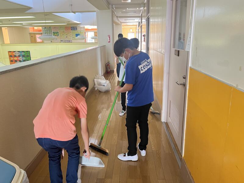 その後、廊下、中央ホール、トイレの清掃に取り組み、朝の作業を元気に終えることができました。