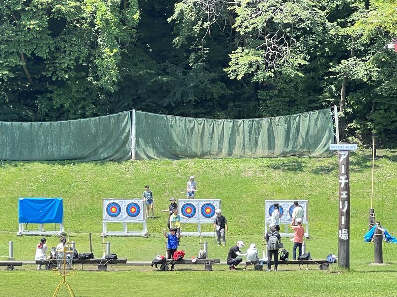 5・6年は3班に分かれて、マウンテンバイク、アーチェリー、アスレチックをローテーションで体験しました。