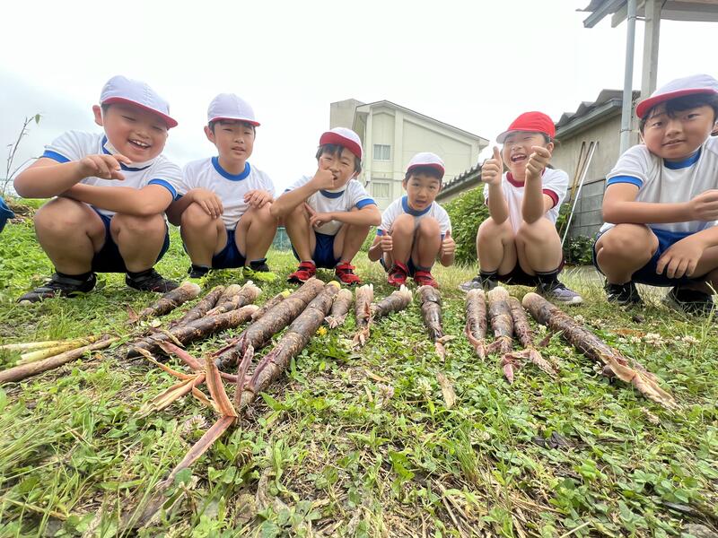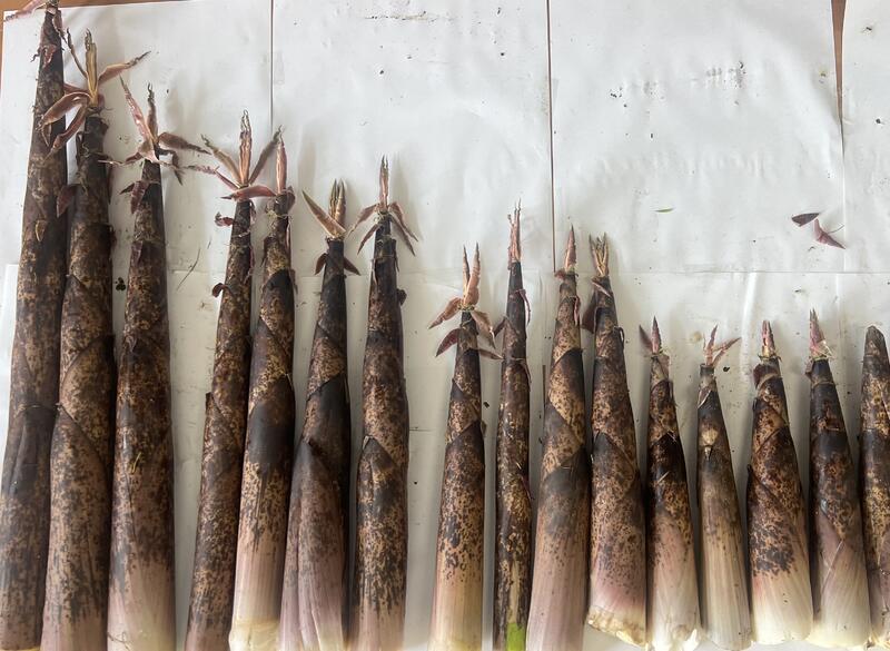 そんな中で、6月12日朝、校舎東側にある竹藪の近く(校舎敷地内ですよ^_^)で、竹の子が地面からニョキニョキと出ているのを見つけ、全部で25本もの大小様々な竹の子を収穫しました。