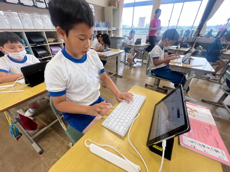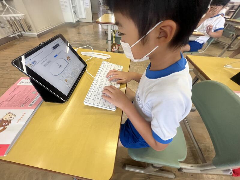 3年生は、朝の時間のちょっとしたスキマ時間を活用して、タイピングの練習をしています。