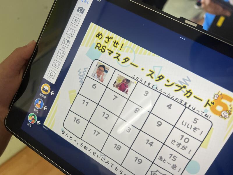 せっかくクイズを解いたらポイントとして加算されるよう、本校独自の「RSマスタースタンプカード」を作成し、ロイロノートで配布し、デジタルスタンプラリーとして、どの学年も楽しめるように工夫しています。