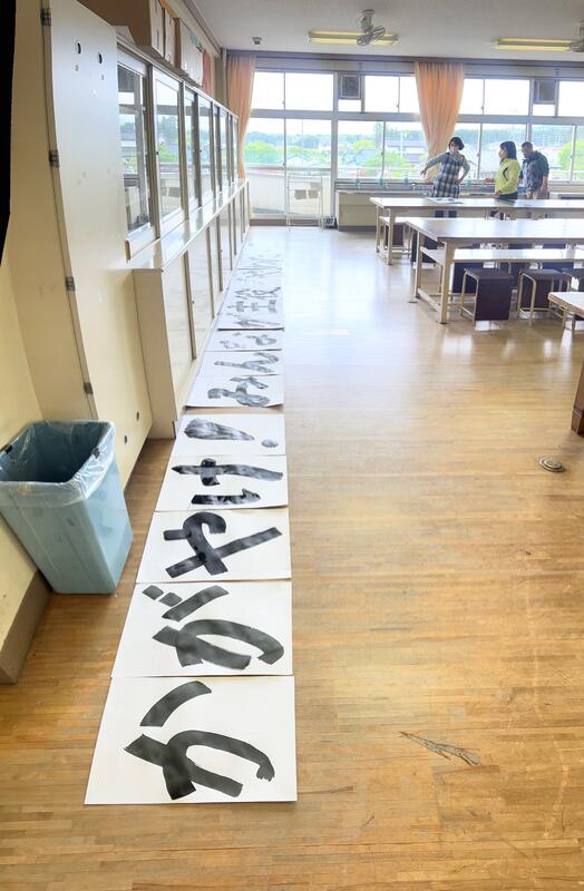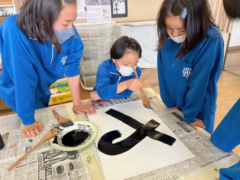 代表委員会の児童が図工室に集まり、一つ一つの文字を丁寧に完成させていました。出来上がったスローガンは、近日中に校舎2階の窓に掲示する予定です。