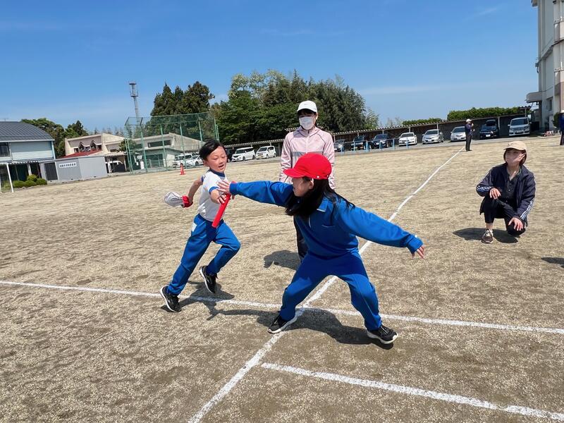 最初はうまく行かないときもありましたが、練習を重ねるうちにうまくリードするコツをつかみ、スピードをうまく繋いだバトンパスが多く見られるようになりました。運動会本番がとても楽しみです!