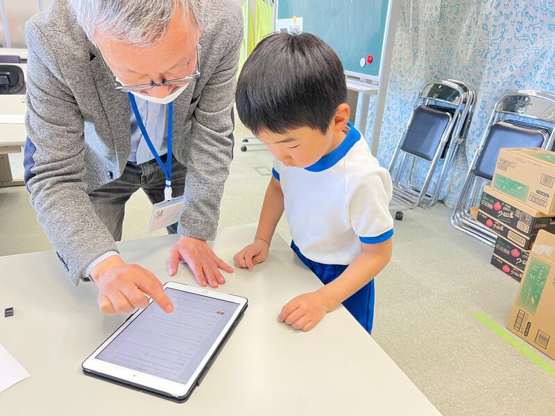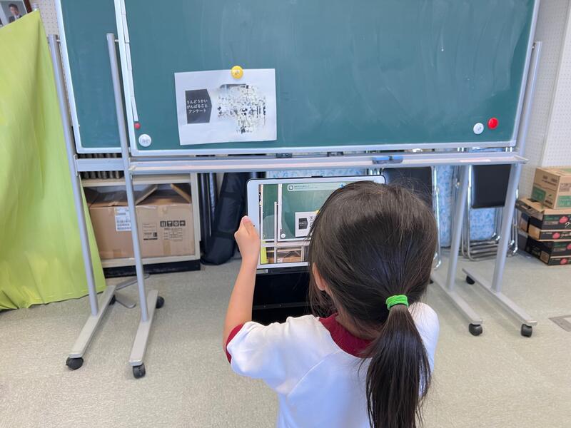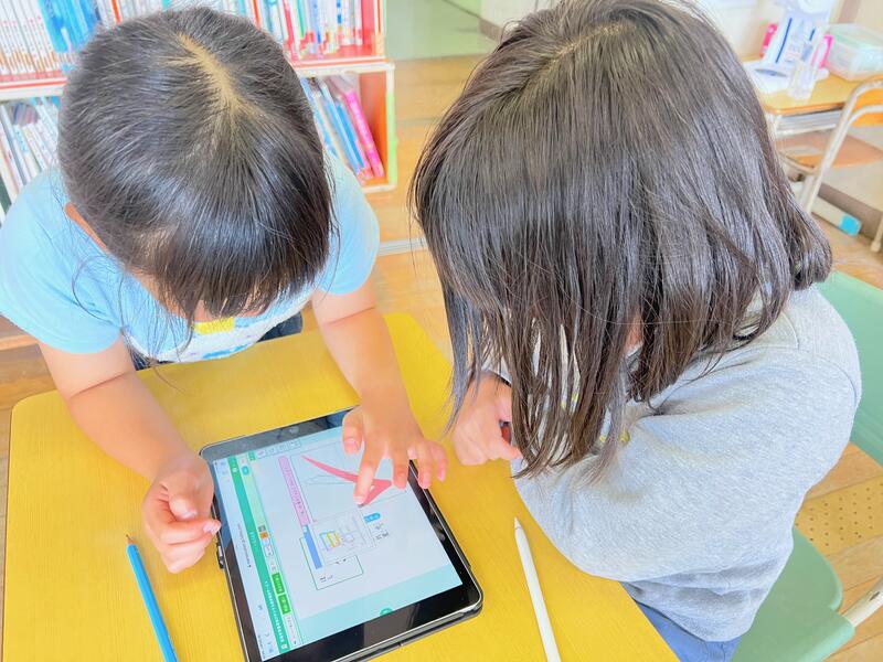 1年生ははじめてのタブレット使用でしたが、ICT支援員さんのサポートを受けながら、QRコードをうまく読み込んでアンケートフォームにアクセスしたり、運動会当日にがんばりたいことを「音声入力」を使って入力したりして、上手に回答していました!