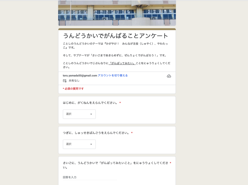 回答結果については、運動会前の「学校だより」で保護者の皆様に紹介します。