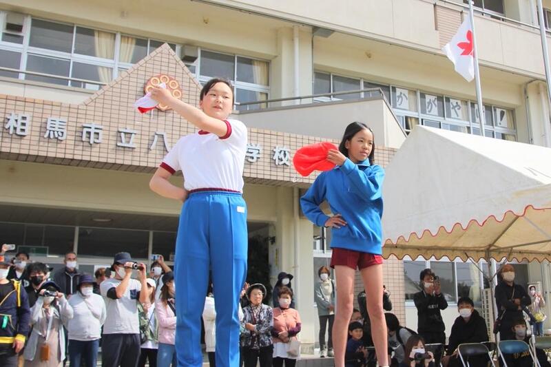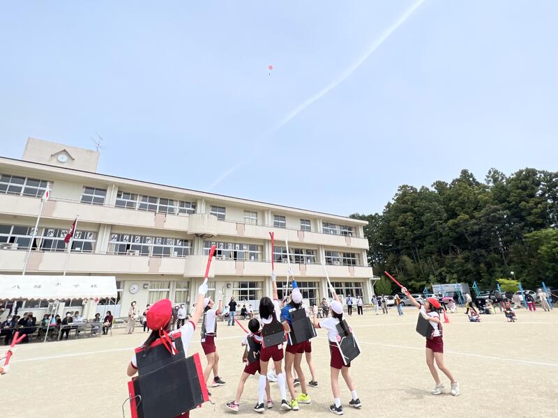 今年度の運動会のスローガンは「かがやけ! みんなが主役、やわたっこ」、副主題「最後まであきらめず全力でがんばろう!」です。
