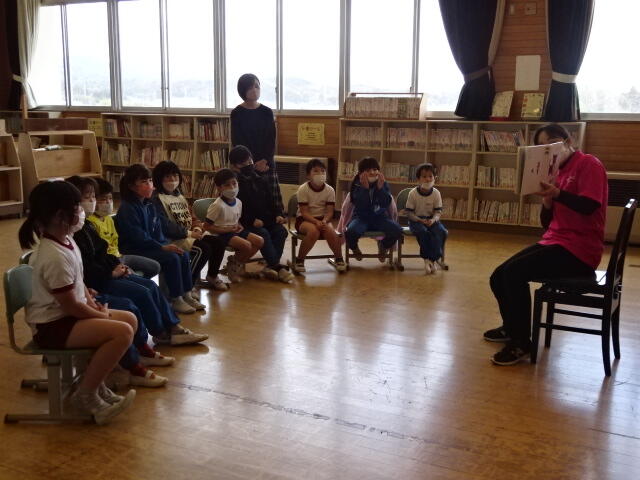 学びのサポート事業による1年生の読み聞かせの様子です。