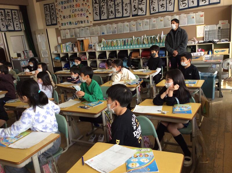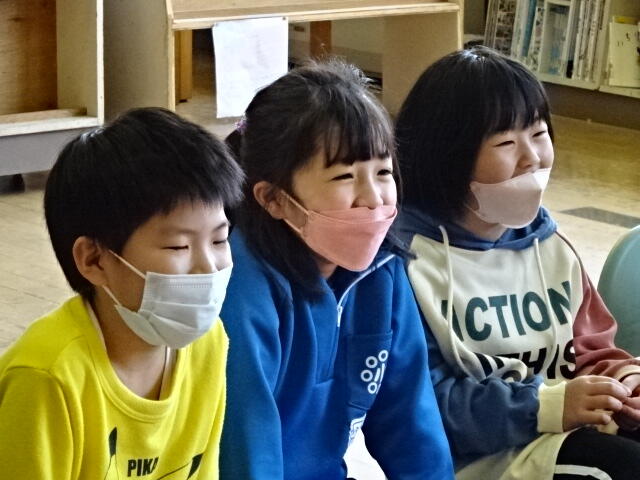 名前も「うさぎ」という日本語ではなく、「ラビット」と英語で答えることができました。1年間でたくさんの英単語を覚えた3年生。クイズを通して、覚えた英単語の復習をすることができました。