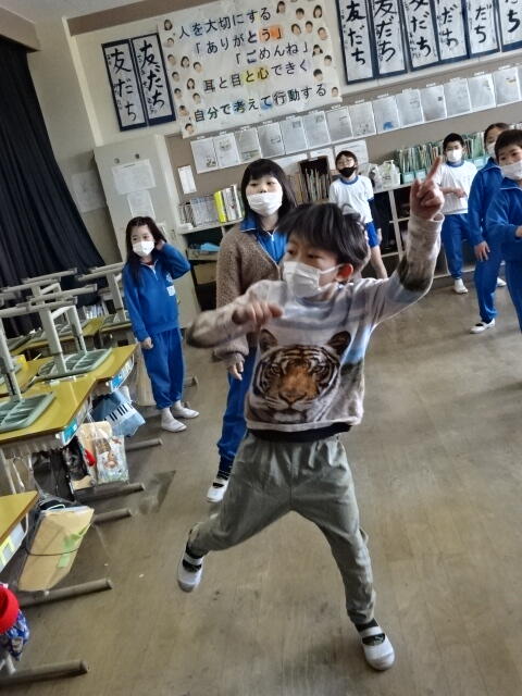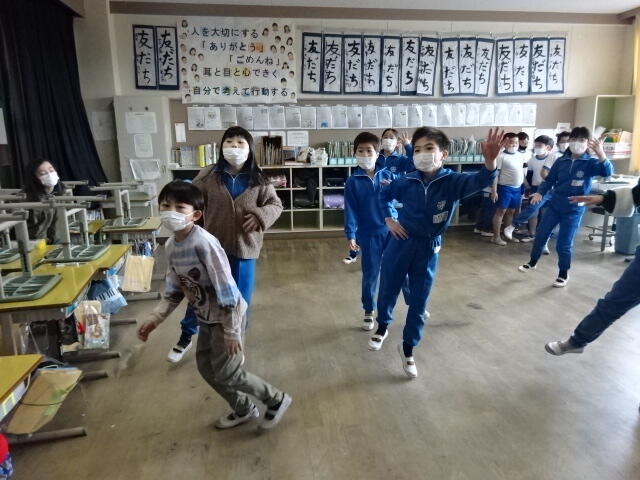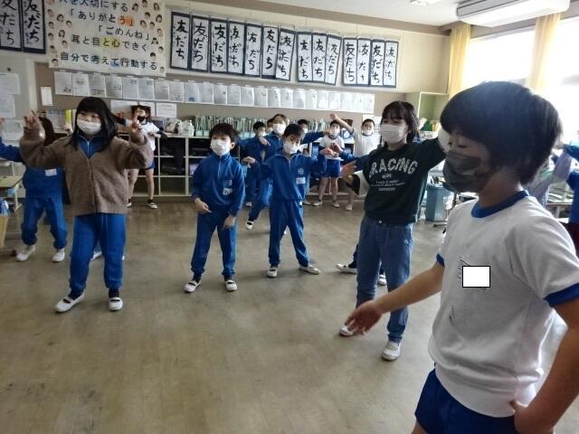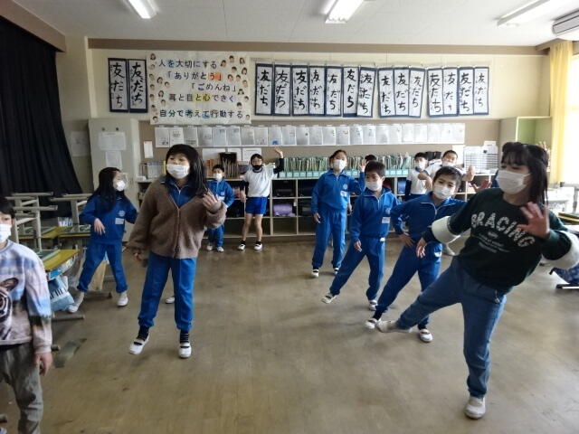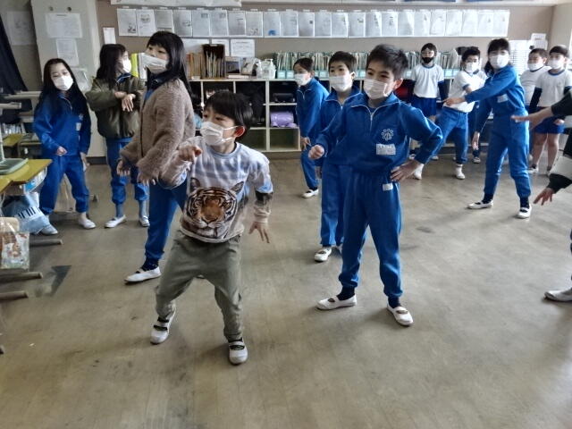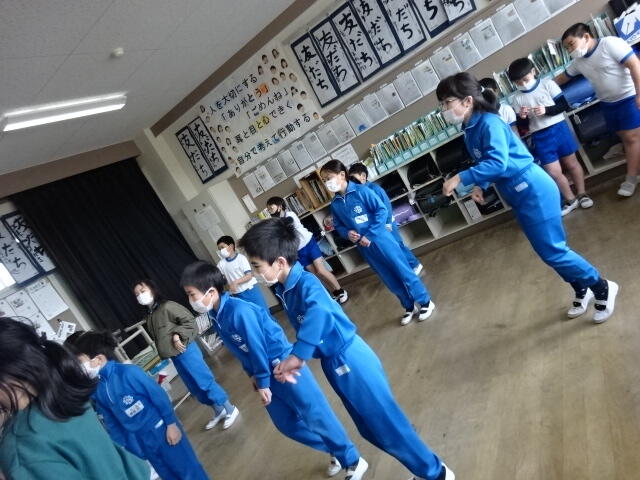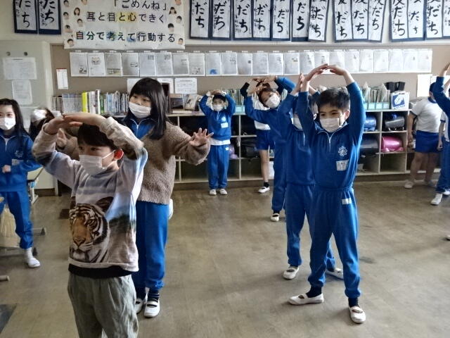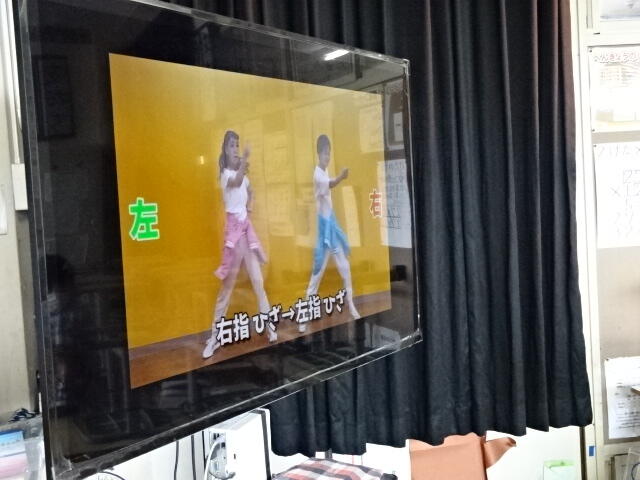 画面に映っている動きを見ながら、音楽に合わせて身体を動かしました。