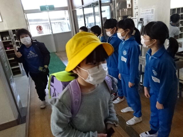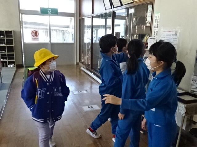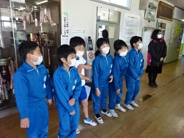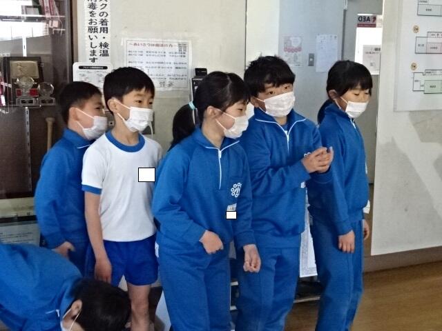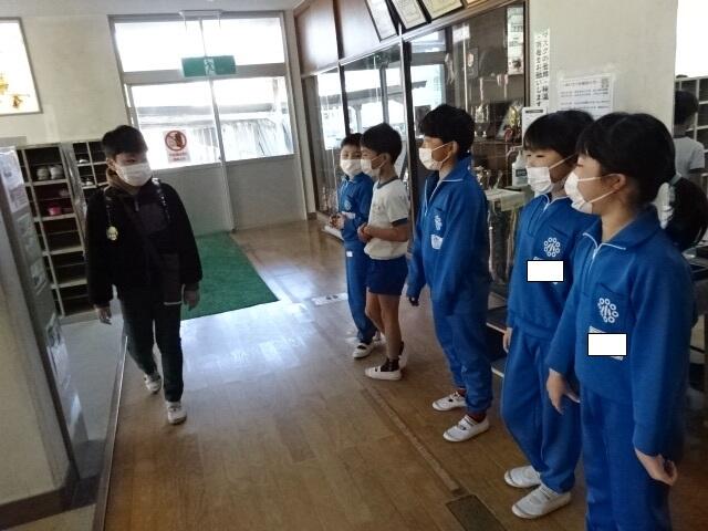 2年生の子どもたちが、自主的に昇降口に立ち、あいさつ運動をしてくれました。