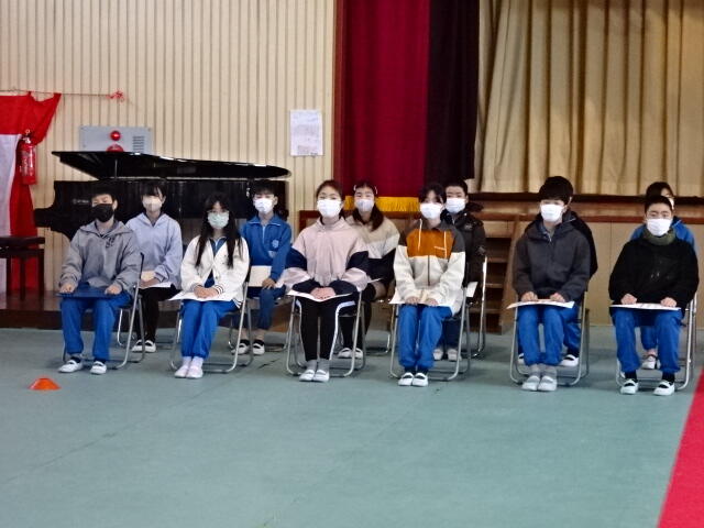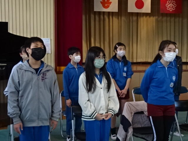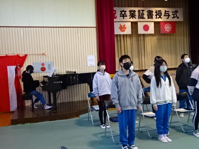 卒業生に向けて心をこめて歌うことができました。今回録画したものを、卒業式で流し、卒業生に聴いてもらう予定です。卒業生に、在校生の気持ちが届きますように。