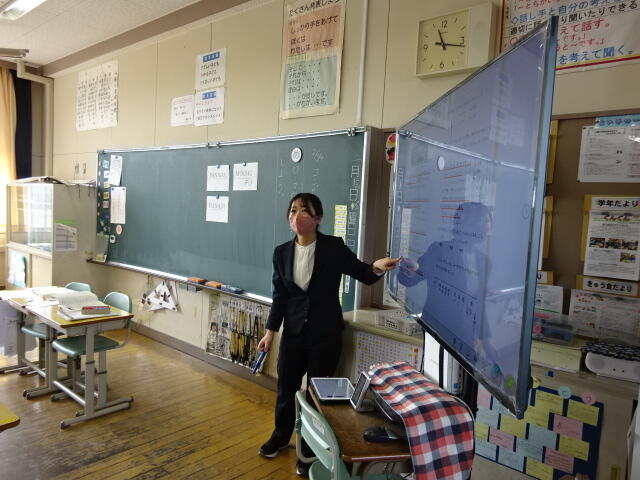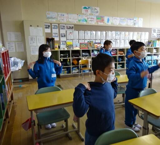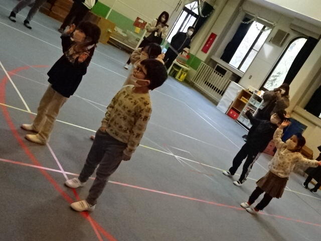 2年生が歌を歌ったり、身体を使ったりしながら、英語に親しんでいます。