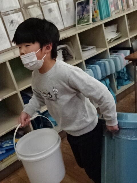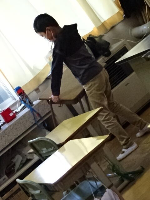 教室の床が乾くまで、机と椅子を廊下に出しておいたのですが、