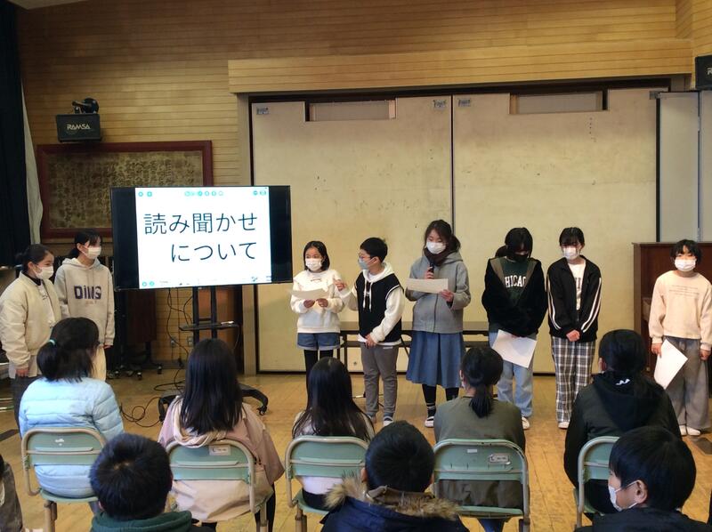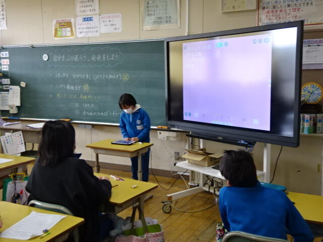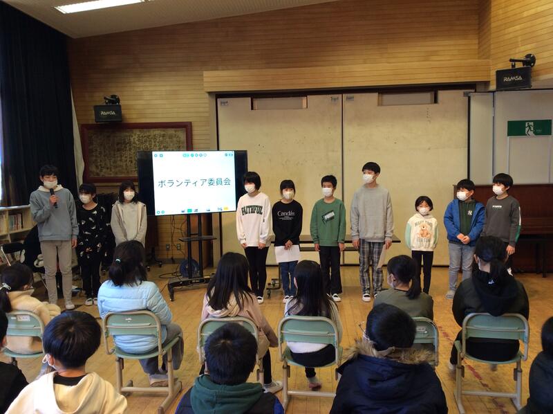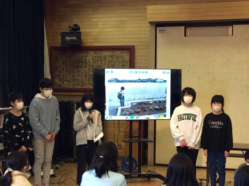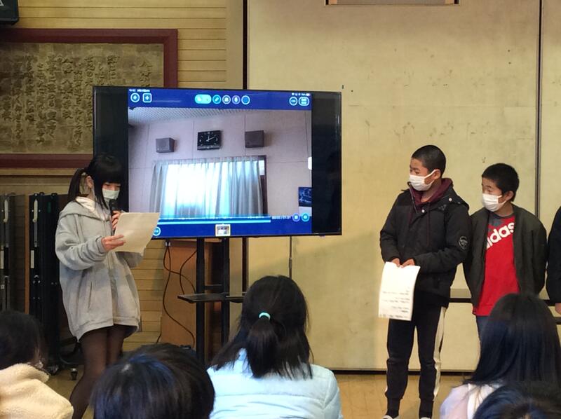 2月22日(水)の6校時は、委員会活動発表会でした。3年生が多目的ホールに集まり、各委員会からの発表を聞きました。各委員会で、電子黒板で写真や動画などを見せながら、1年間どんな活動をしたかを工夫して発表しました。