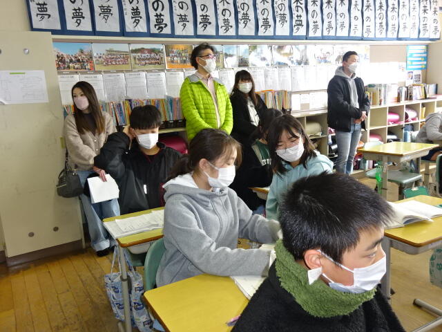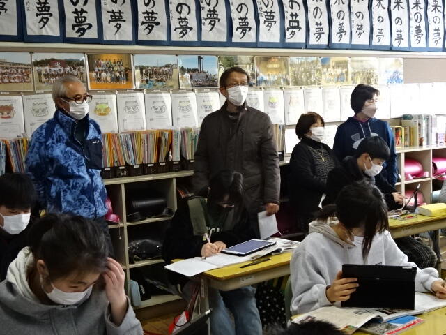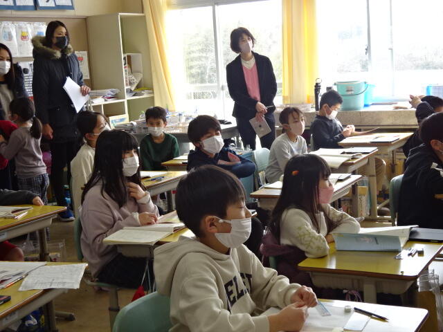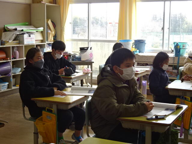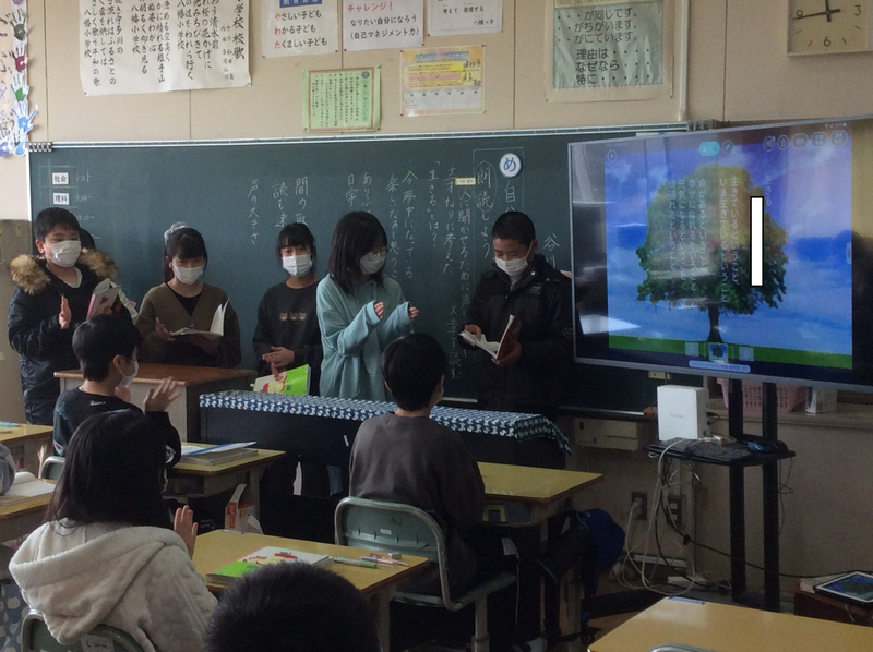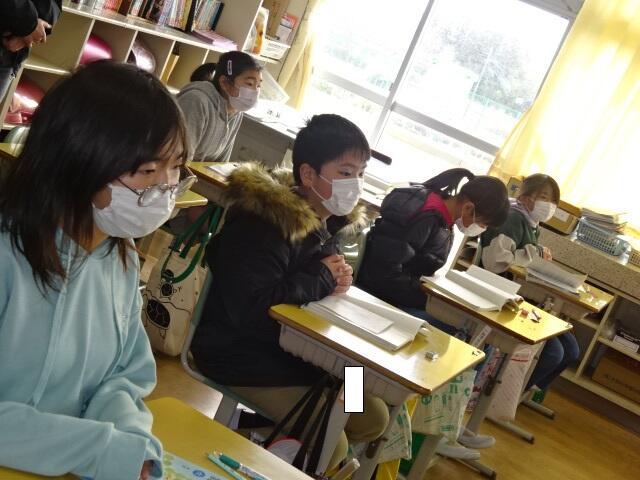 2月24日(金)の4校時の授業参観の様子です。6年生は、国語科では、自分で創作した「生きる」の詩について、思いや意図が伝わるように、一人ひとりが朗読しました。