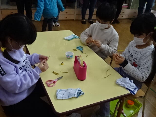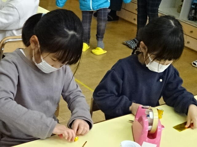 年長児は、ひなまつり製作と得意なこと発表を行いました。