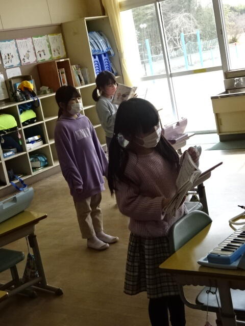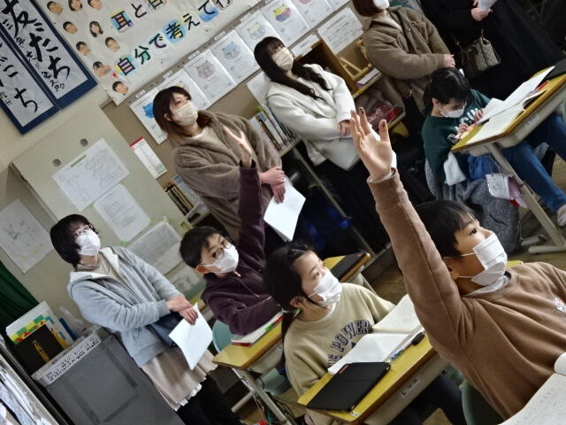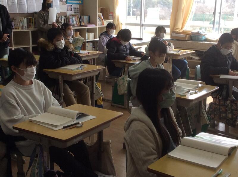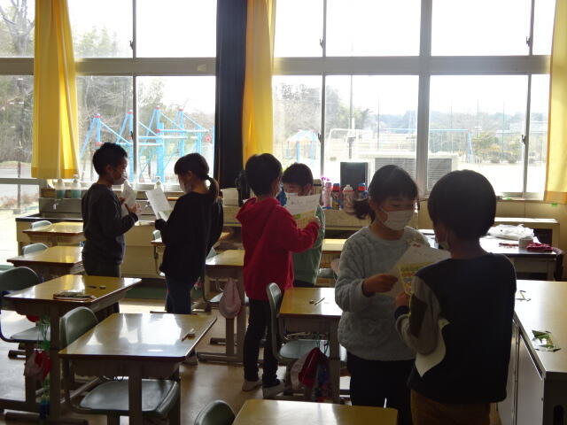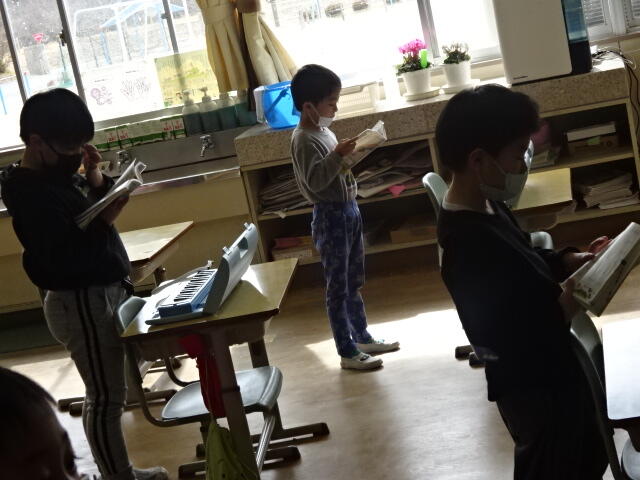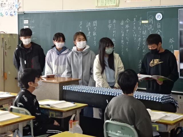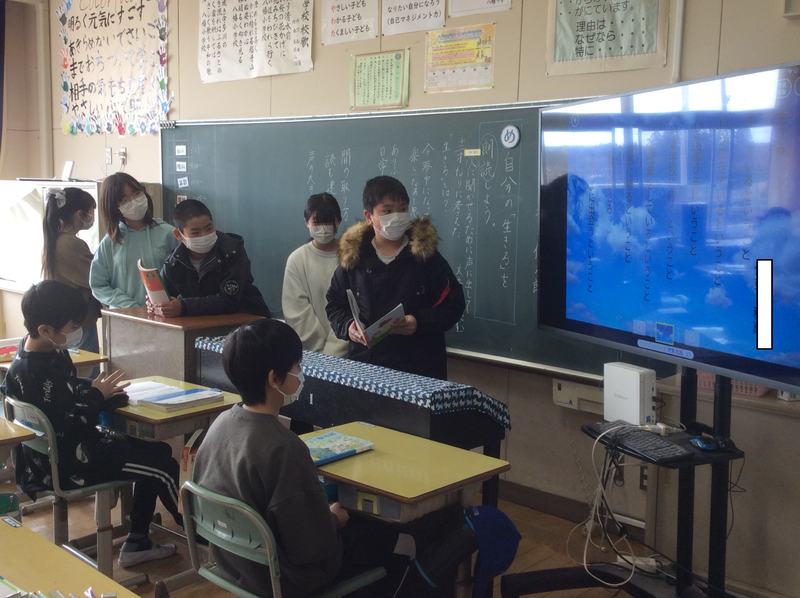 2023年2月24日 17時20分2月24日(金)の4校時の授業参観の様子です。6年生は、国語科では、自分で創作した「生きる」の詩について、思いや意図が伝わるように、一人ひとりが朗読しました。