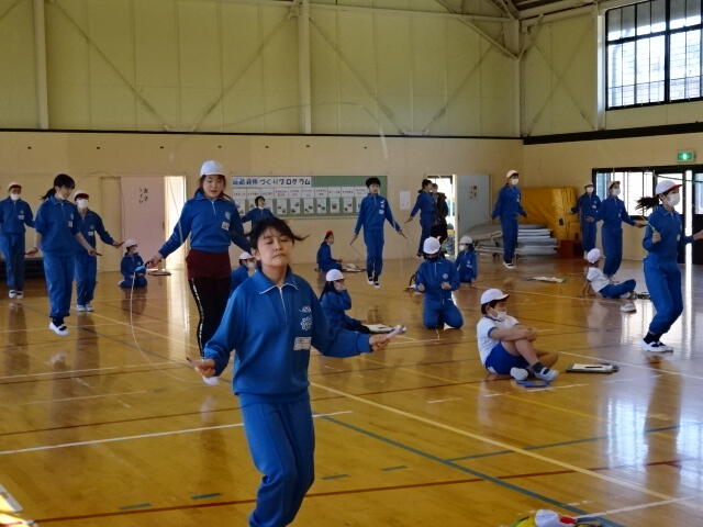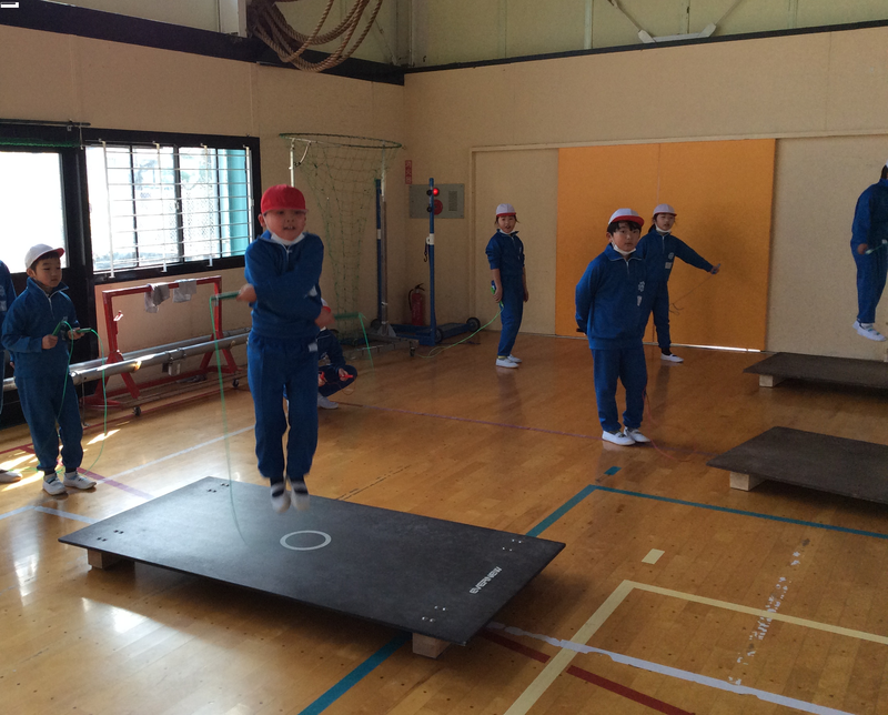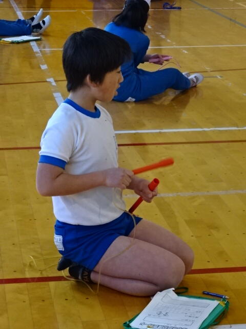 ジャンプ台を使って、二重跳びや二重あや跳びの練習をしています。挑戦するたびにぐんぐん上達しています。