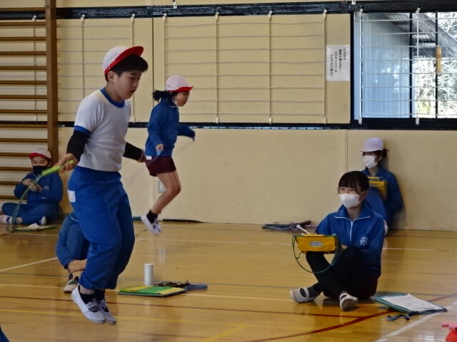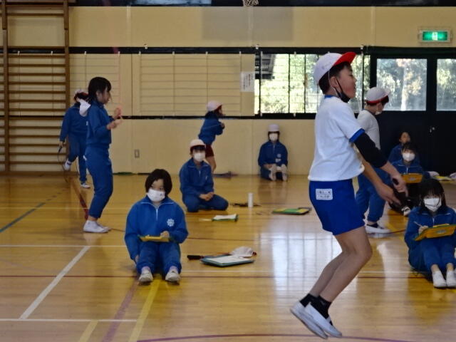 本日3校時に、3年生と6年生のなわとび記録会を行いました。