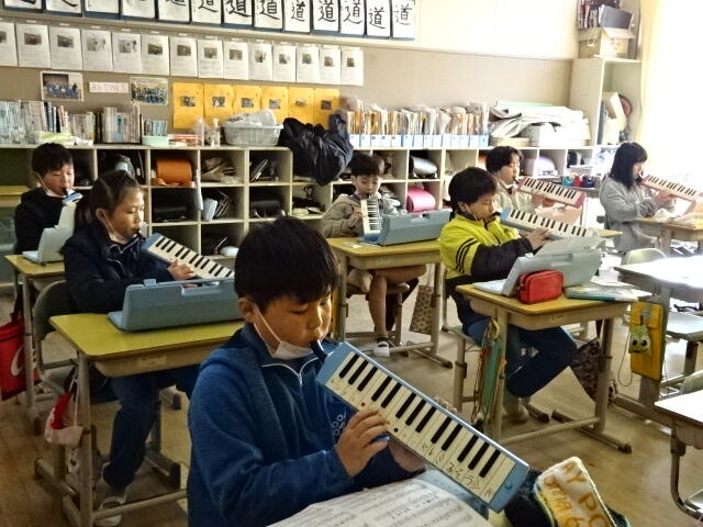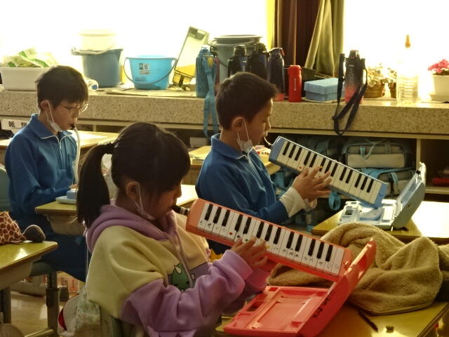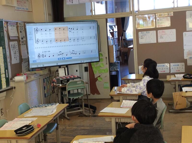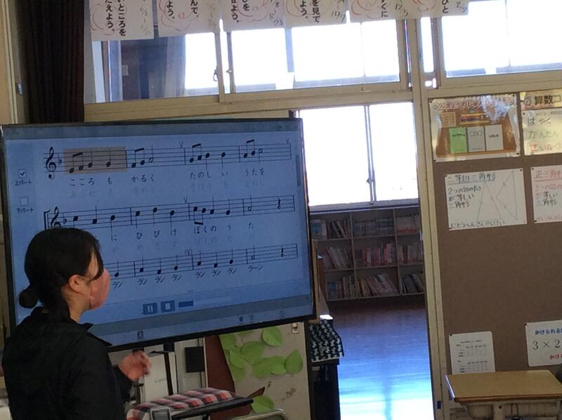 二部に分かれるところでは、先生が下のパートの旋律を鍵盤ハーモニカでひき、音をとりやすくしてくれました。上のパートとの音の重なりを意識しながら、響きのある声で歌うことができました。