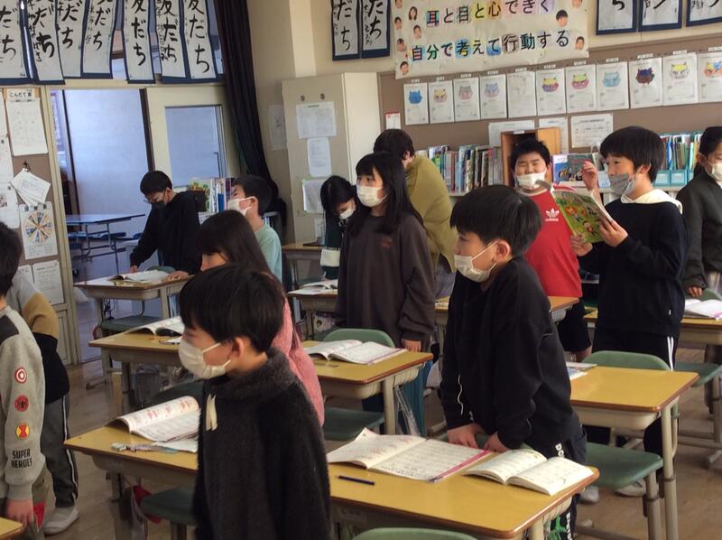 今日は、みんなで声を揃えて、先生と交互に読みました。
