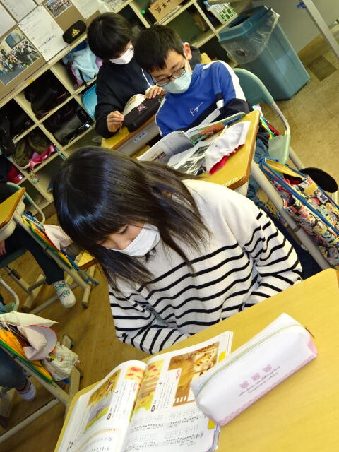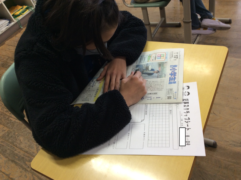 1月27日(金)の朝の時間の様子です。5年生は、スクラップシート作りに向けて、まず新聞記事を読みました。そこで、それぞれが気になる記事を選びました。ここからは、週末の宿題で、記事の大事な文に線を引き、要約や感想を書きます。