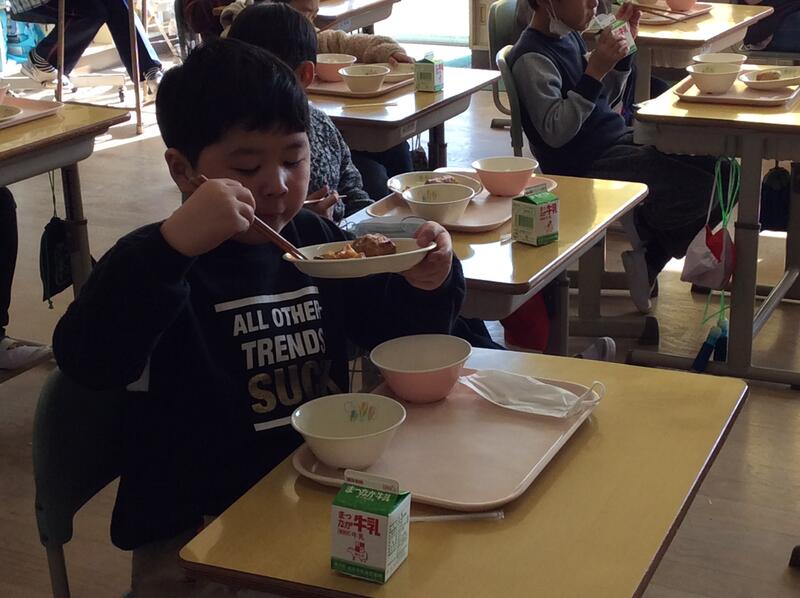 今日の給食は、福島県産の鶏肉や野菜を使用した、ごはん・こづゆ・ひきな炒り・甘辛つくねでした。県産の食材をたくさん使用した栄養たっぷりのメニューでした。地元でとれた食品を使用した郷土料理を食べることによって、生産者さんへの感謝や地元への関心を育んでほしいと思います。