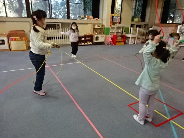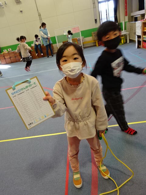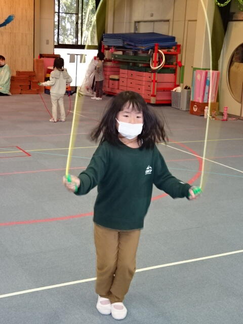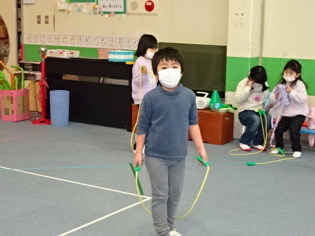今日の朝も、幼稚園の子どもたちはなわとびの練習をがんばっていました。