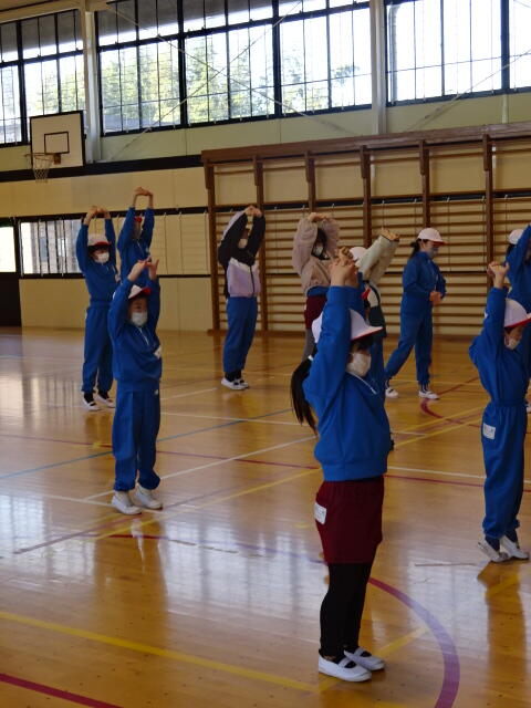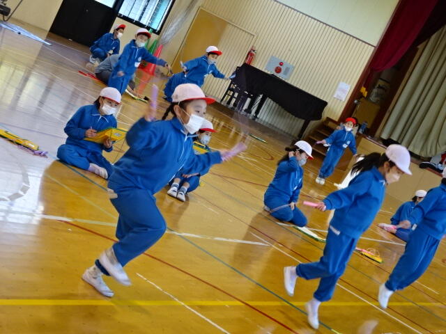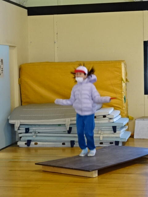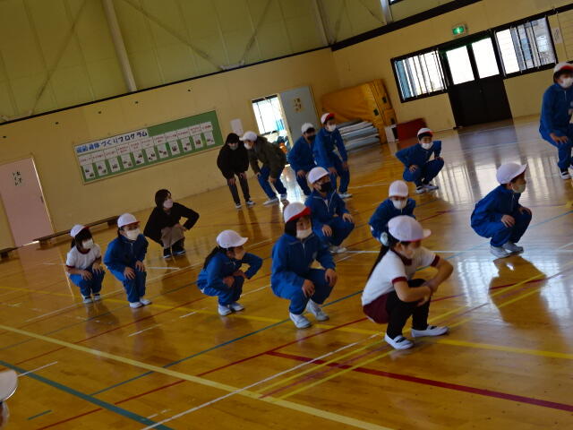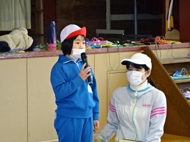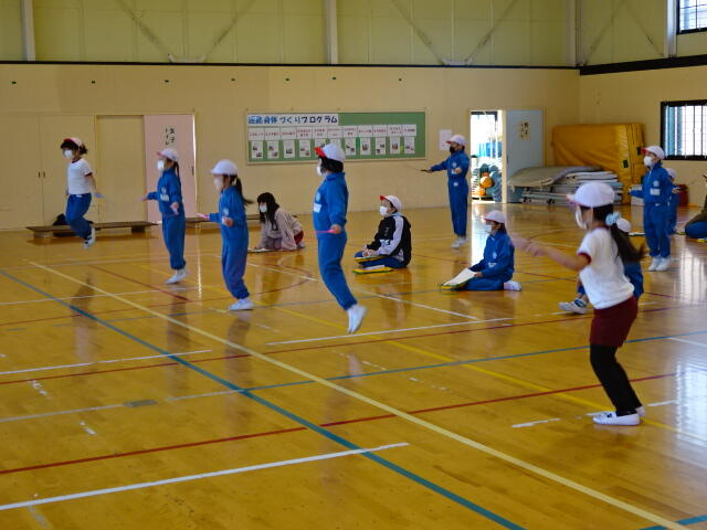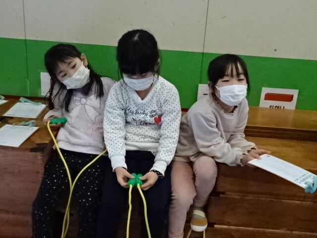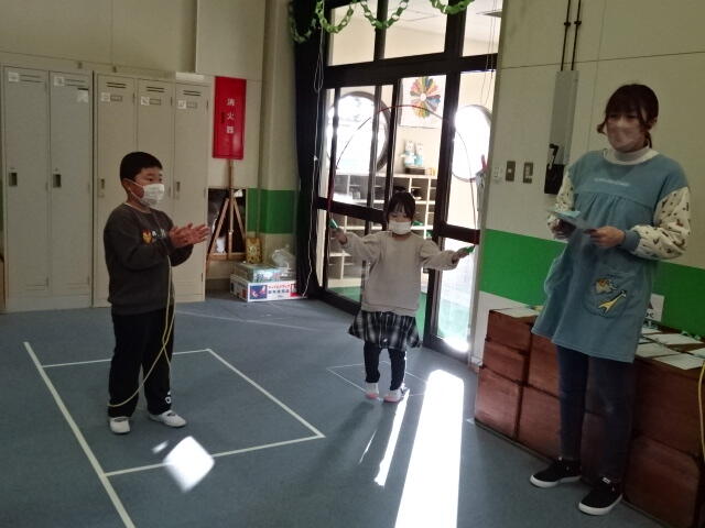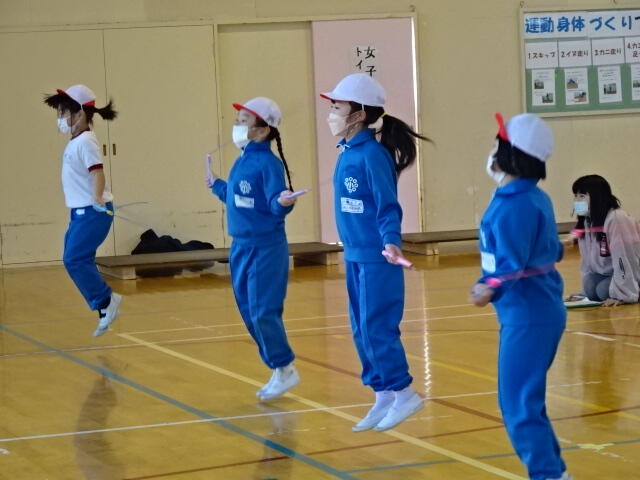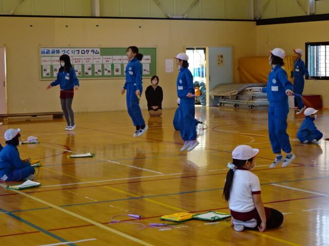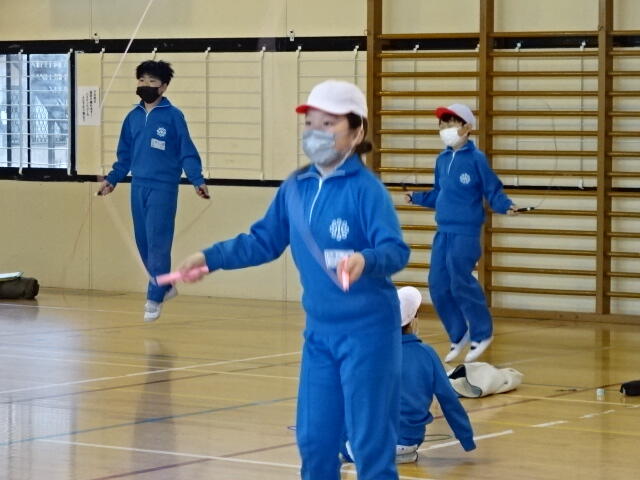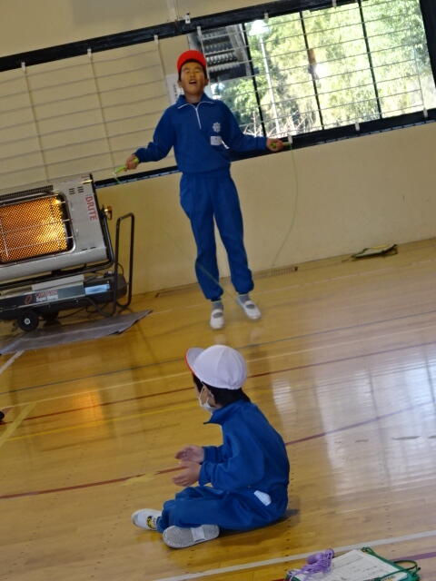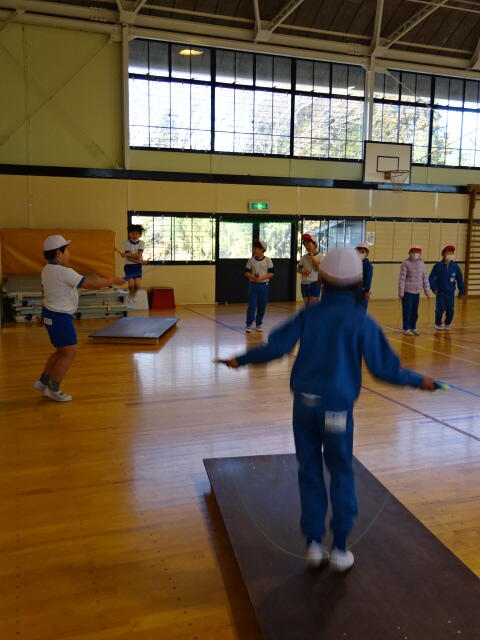 今日の業間運動は、下学年の子どもたちが体育館でなわとびの練習をしました。