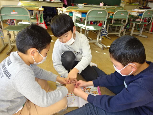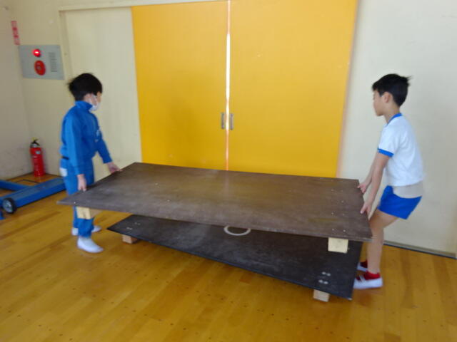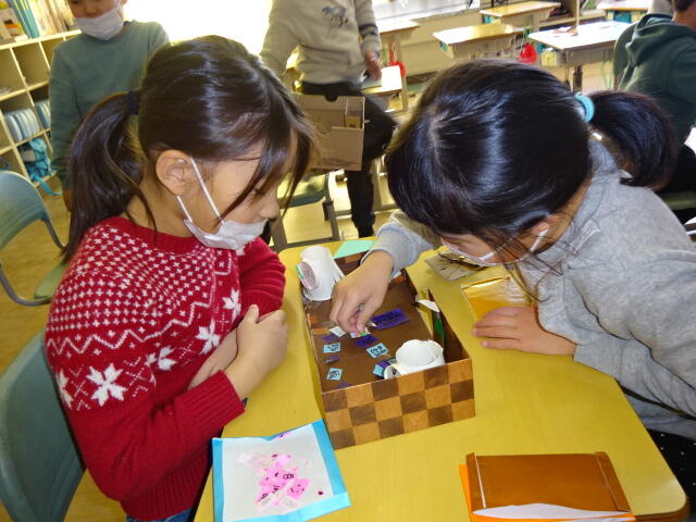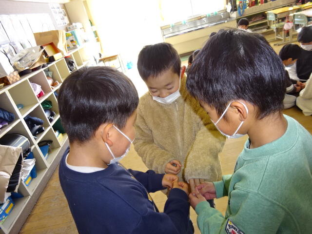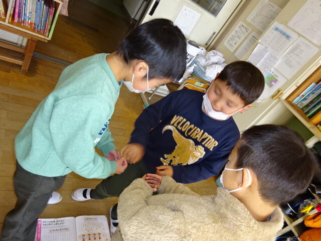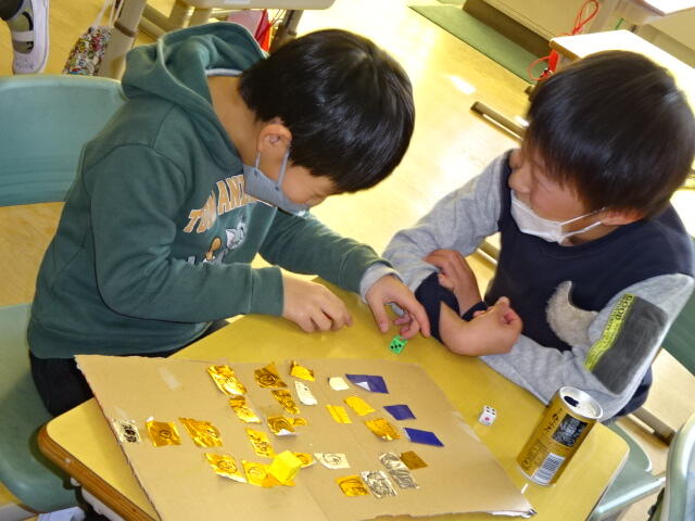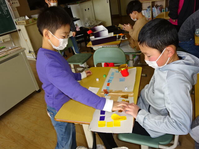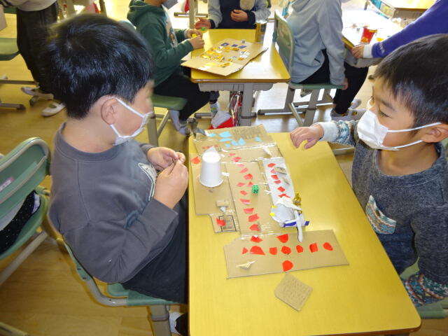 2023年2月1日 17時55分2年生が図画工作科で作った作品で友達と一緒に遊びました。