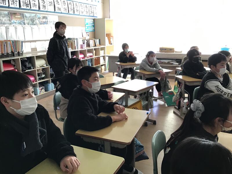 最後のヒントとして「栄冠は君に輝く」の曲が流れると、「わかった!」という児童の声。そう、正解は、福島県出身の作曲家、「古関裕而」さんです。八幡っ子のみなさんの中にも、福島県、日本、そして世界的に有名な人が出るかもしれません。ぜひ夢をもって進んでほしいという校長先生のメッセージが伝わってきました。