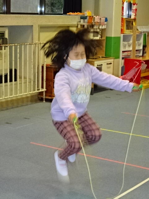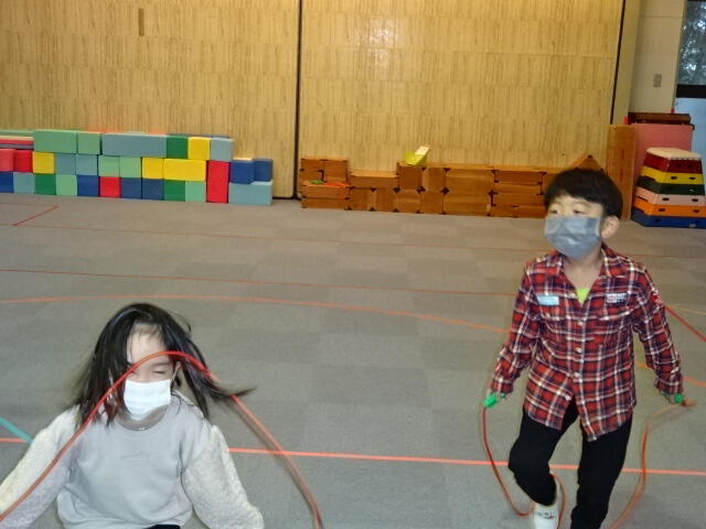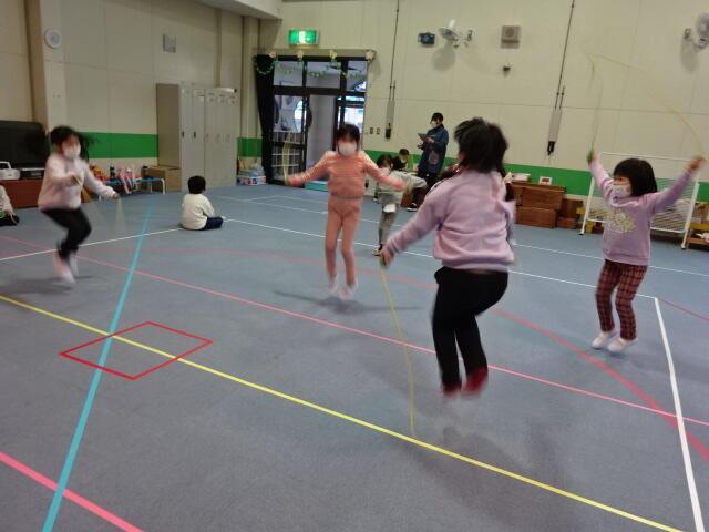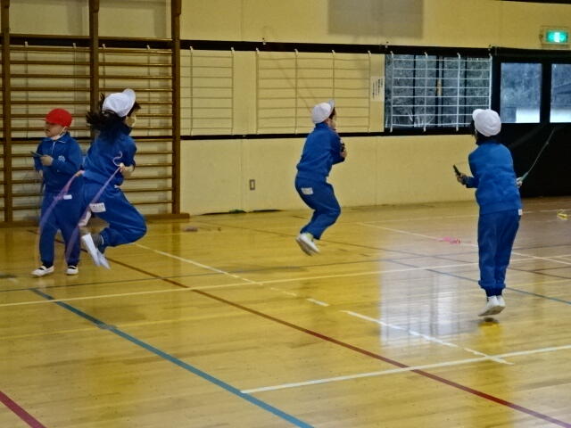 幼稚園の子どもたちも小学校の子どもたちもなわとびの練習をがんばっています。