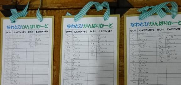 記録がわかるように、なわとびがんばりカードを使って取り組んでいます。