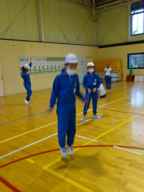 2023年1月26日 16時54分1月24日(火)の6年生の体育の様子です。2月のなわとび記録会に向けて、なわとびの練習に真剣に取り組んでいます。持久跳びの練習では、目標タイム6分間を目指して、跳び続けました。