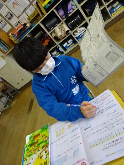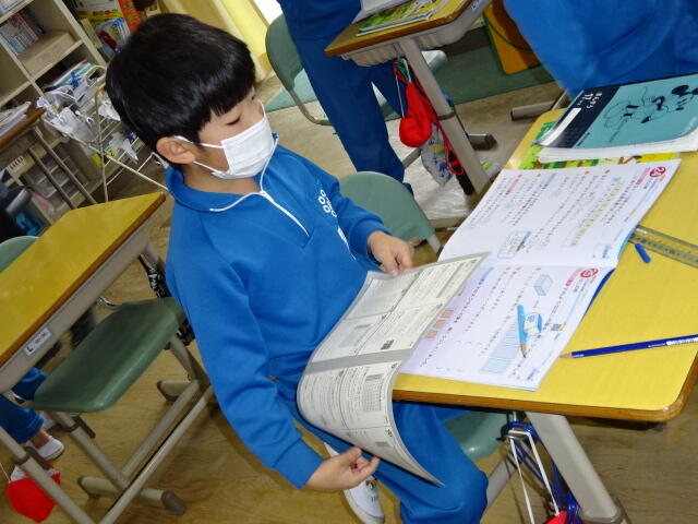 そして、2年生は算数科の学習で、問題を解いて自分で丸付けができるようになりました。