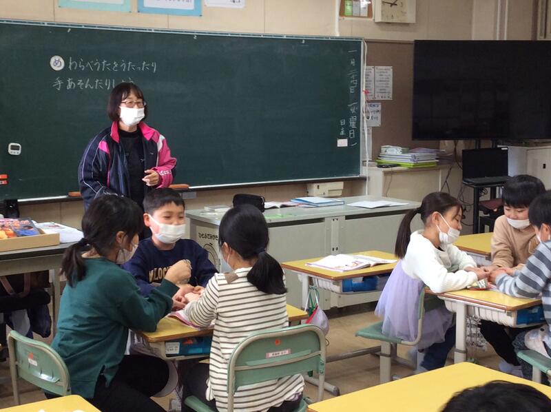 1月24日(火)の2年生の音楽の様子です。今回は、「ずいずいずっころばし」などのわらべ歌を歌ったり、手遊びをしたりしました。グループを作って、手遊びをしながら何度も歌うことで、わらべ歌に親しんでいました。