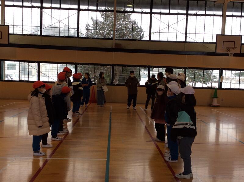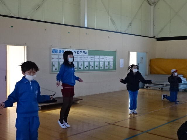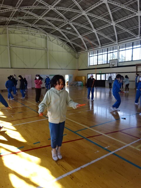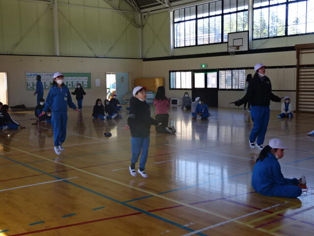 下学年の子どもたちが体育館でなわとびの練習をしました。