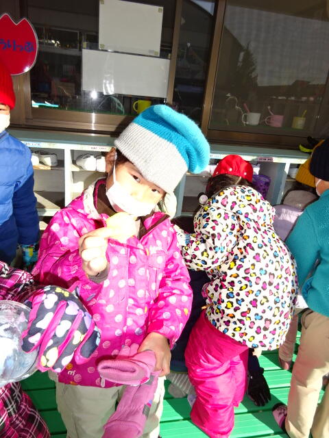 園庭に積もった雪で、幼稚園の子どもたちが雪遊びを楽しみました。