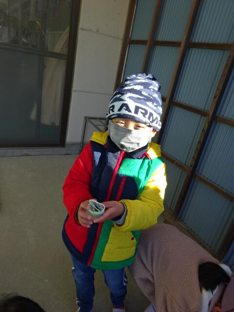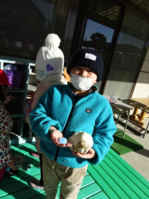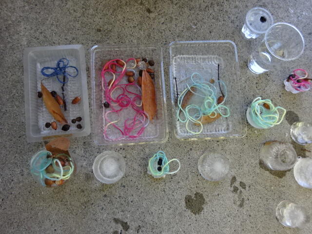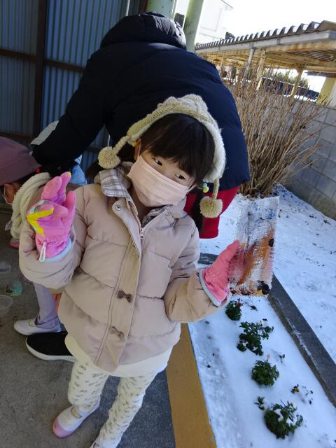昨日から一晩外に置いていた水は固まって氷になりました。