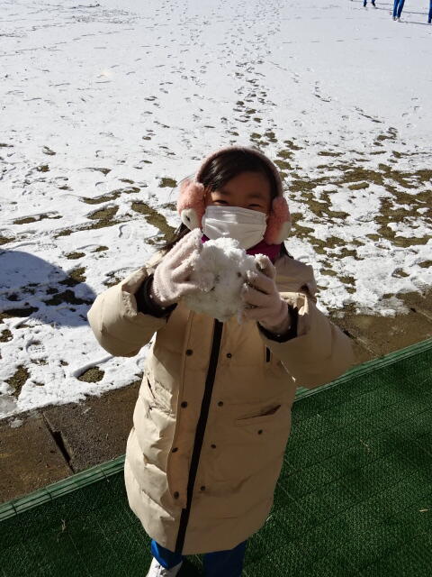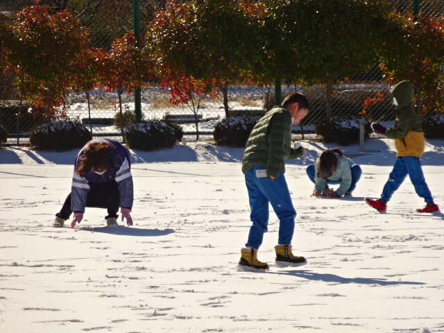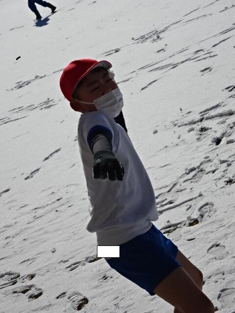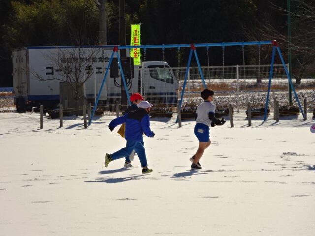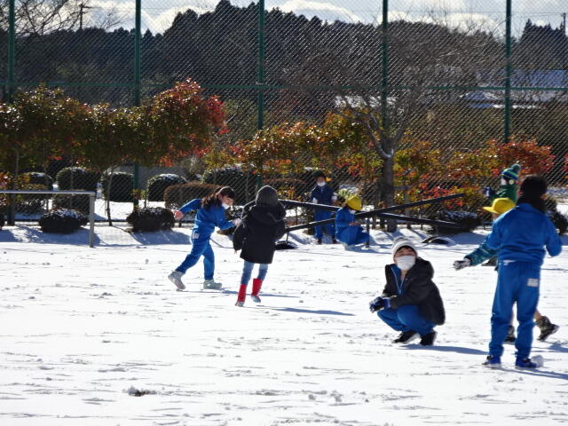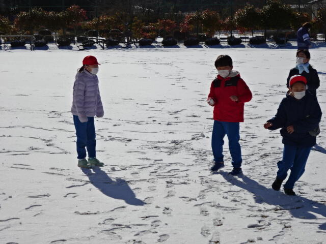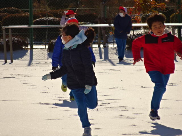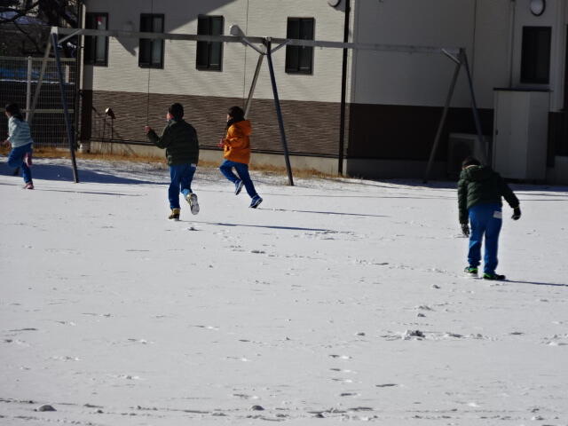 下学年の子どもたちは、雪が残っている校庭へまっしぐら。